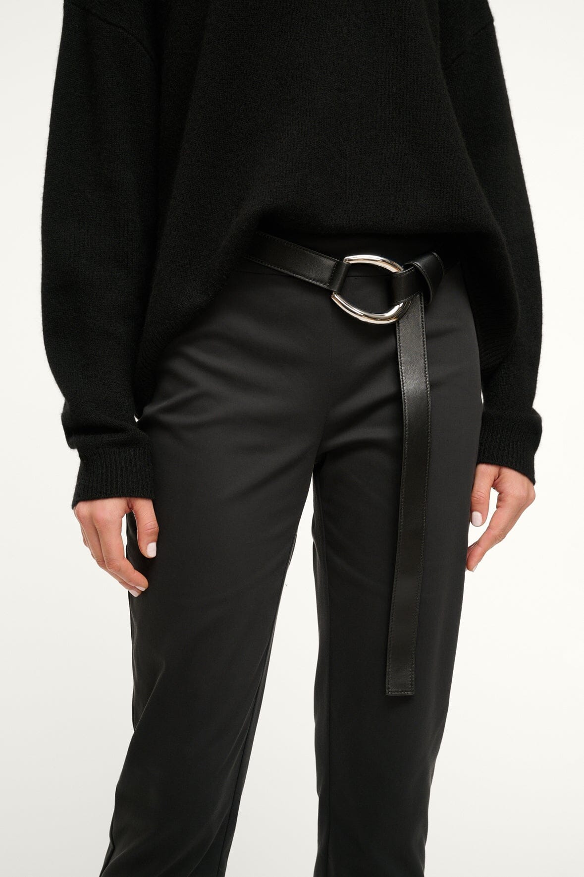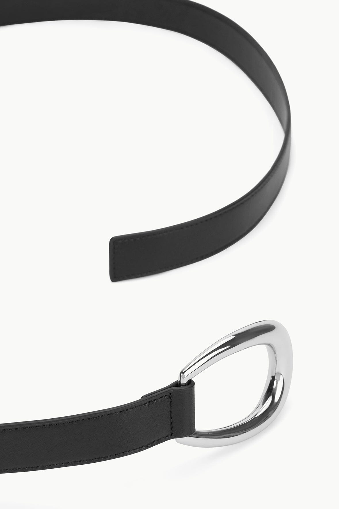 Leather wrap belt with?our crescent moon-shaped buckle hardware.