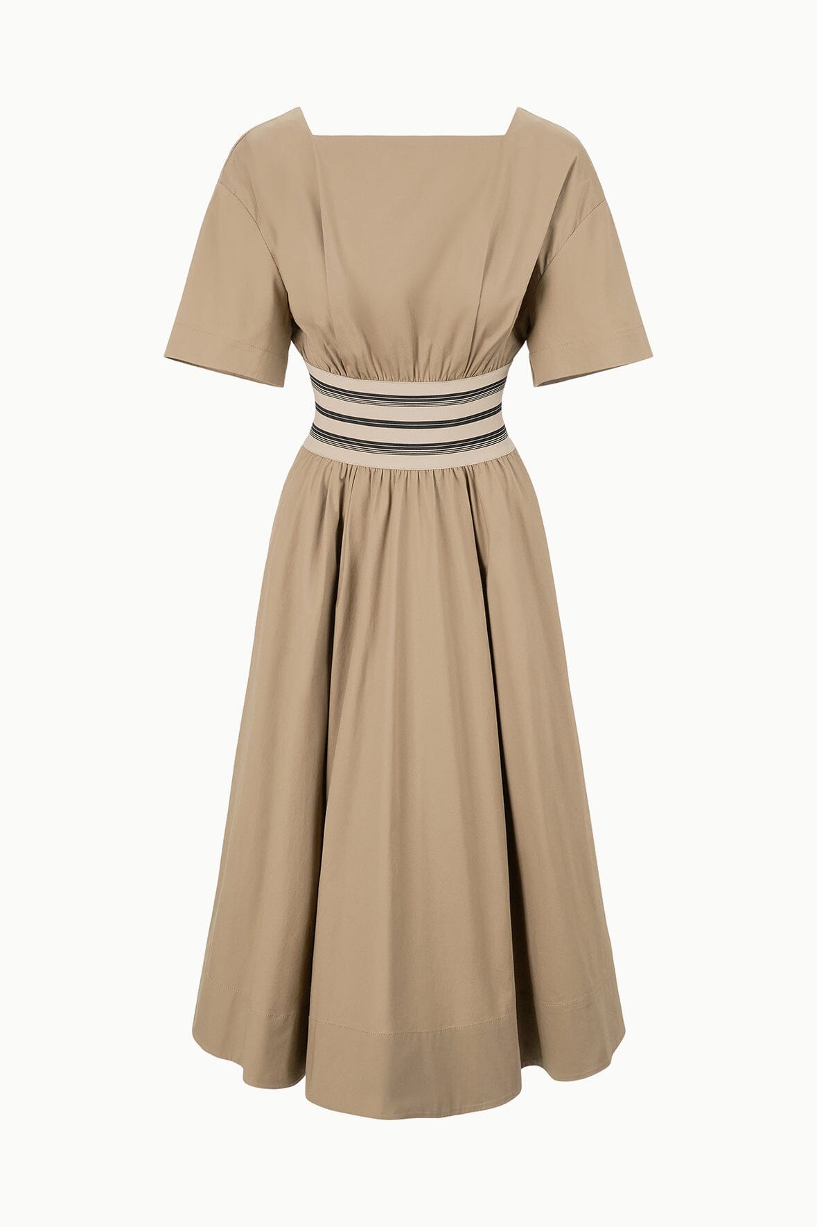 A comfortable day dress crafted from our slightly stretchy cotton poplin fabric. The Amy features a square neckline and an embroidery-detailed elastic waistband.