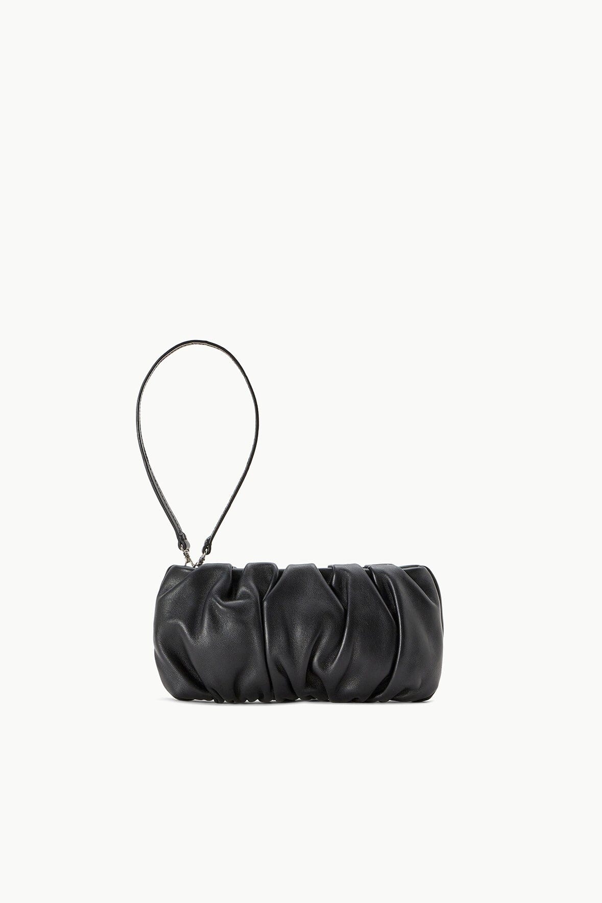 The Bean Bag is a small convertible clutch in soft leather. This style features a zipper closure. suede lining and removable shoulder strap.