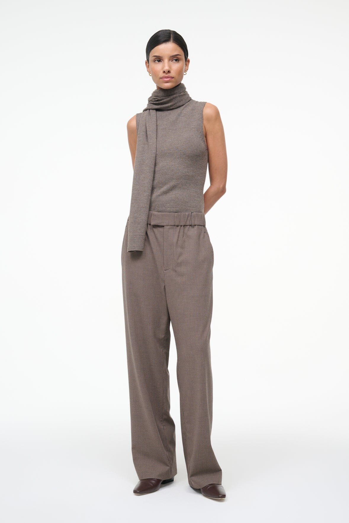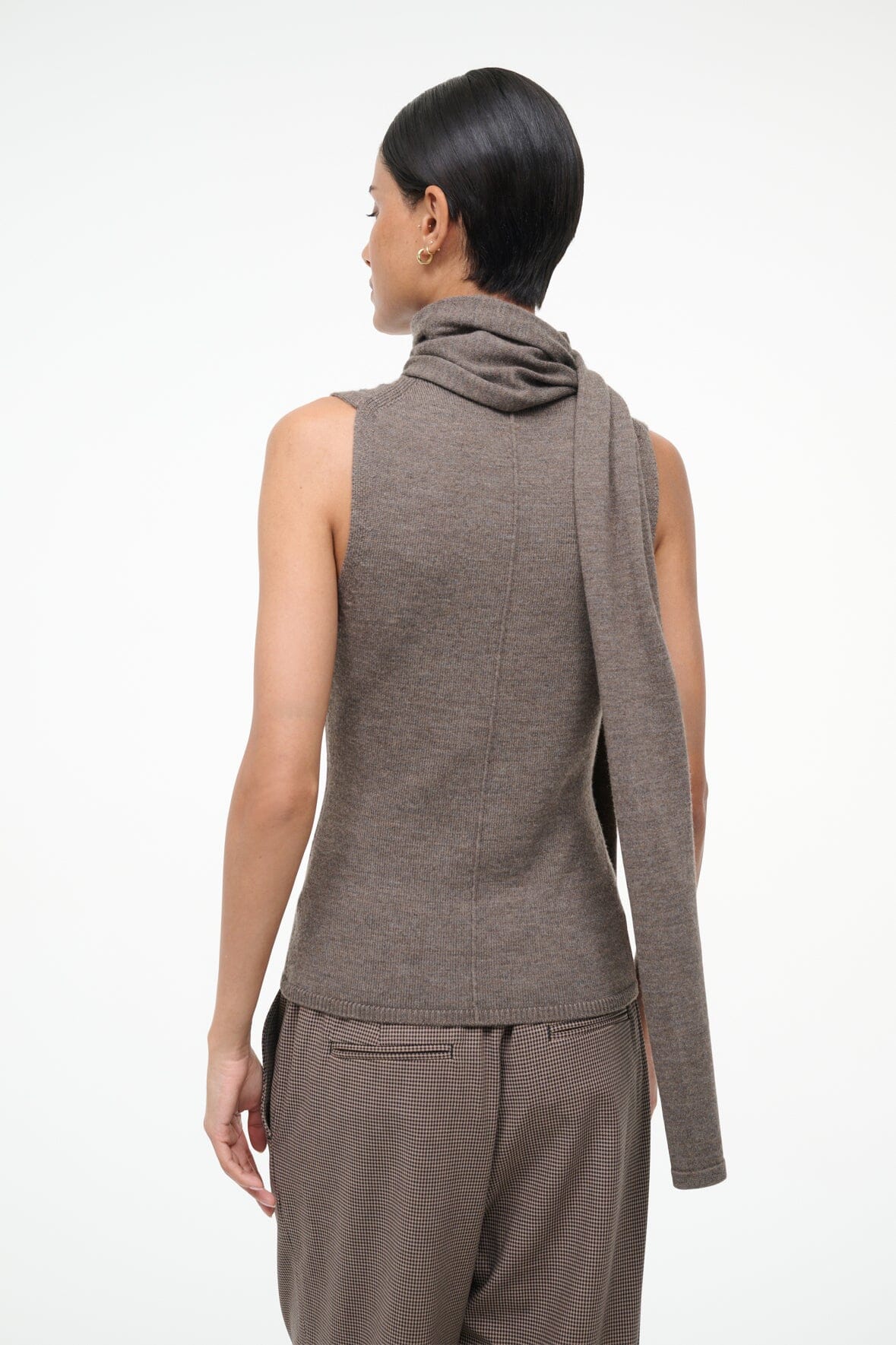The Canal Top is a lightweight merino wool knit. with a mock turtleneck and comes with a detachable scarf.