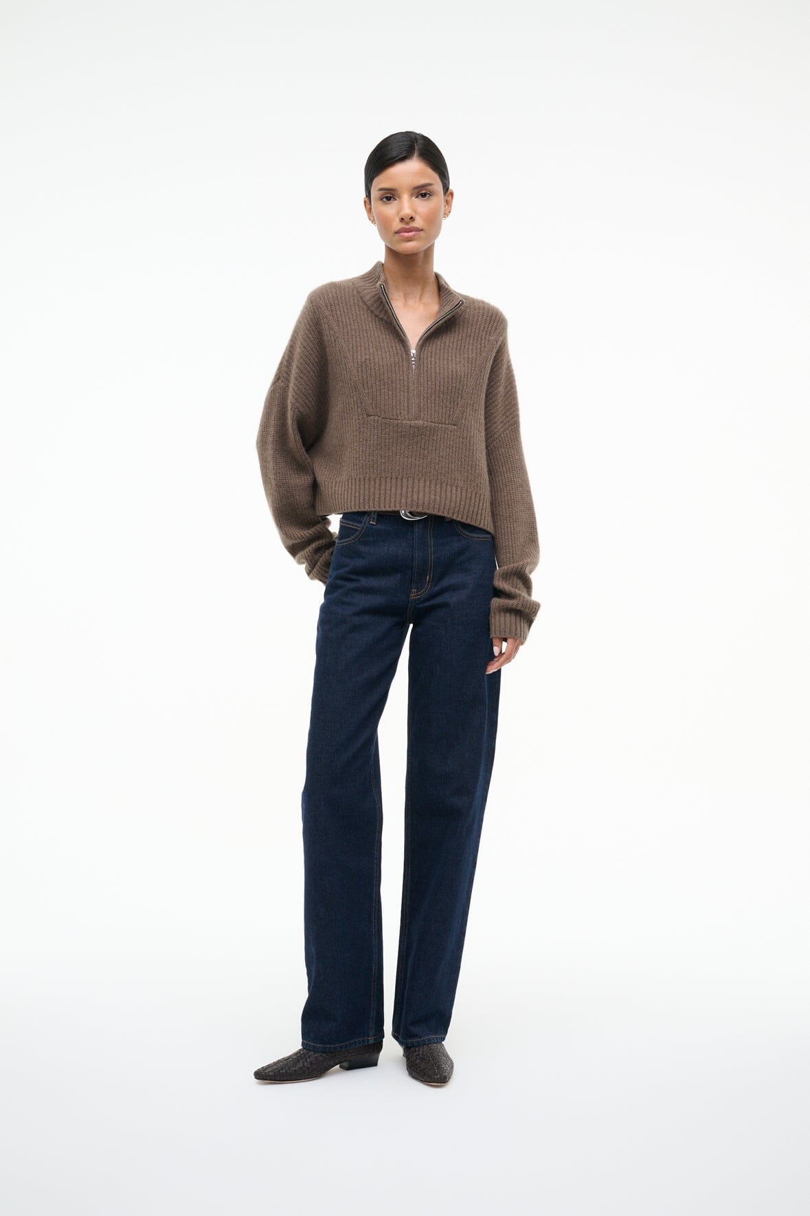 The Cropped Hampton has been updated in a chunky cashmere knit with a half-zip detail down the front.