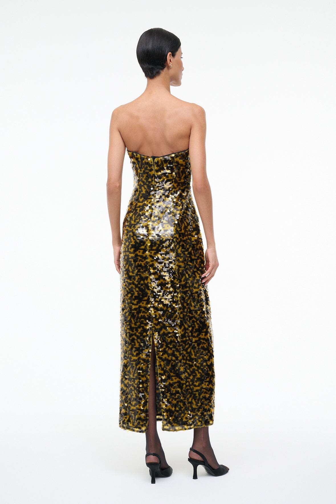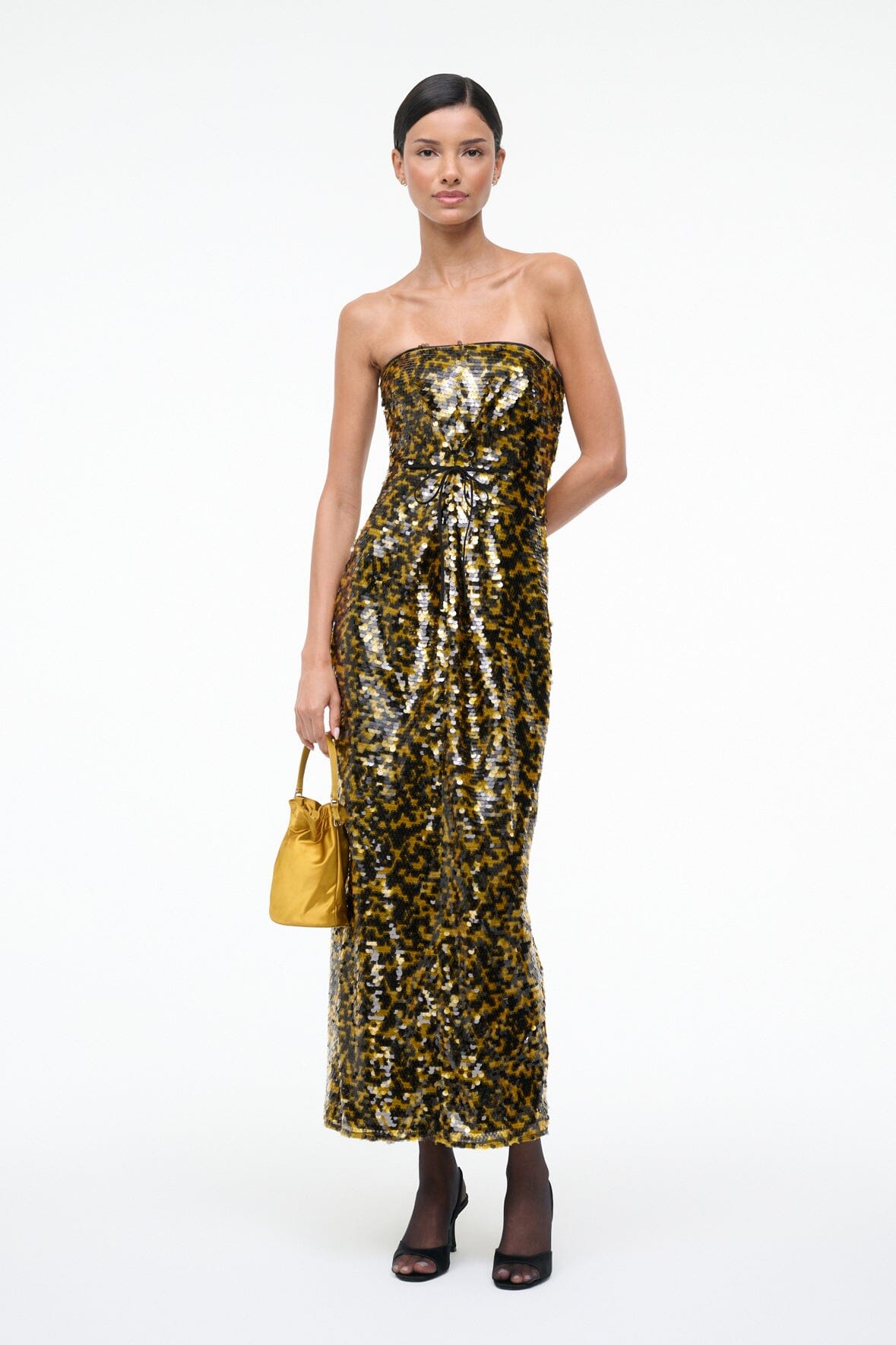 Inspired by or best-selling Casey Dress. the Cece Dress is a fully sequined strapless dress with a cinched empire waist detail.