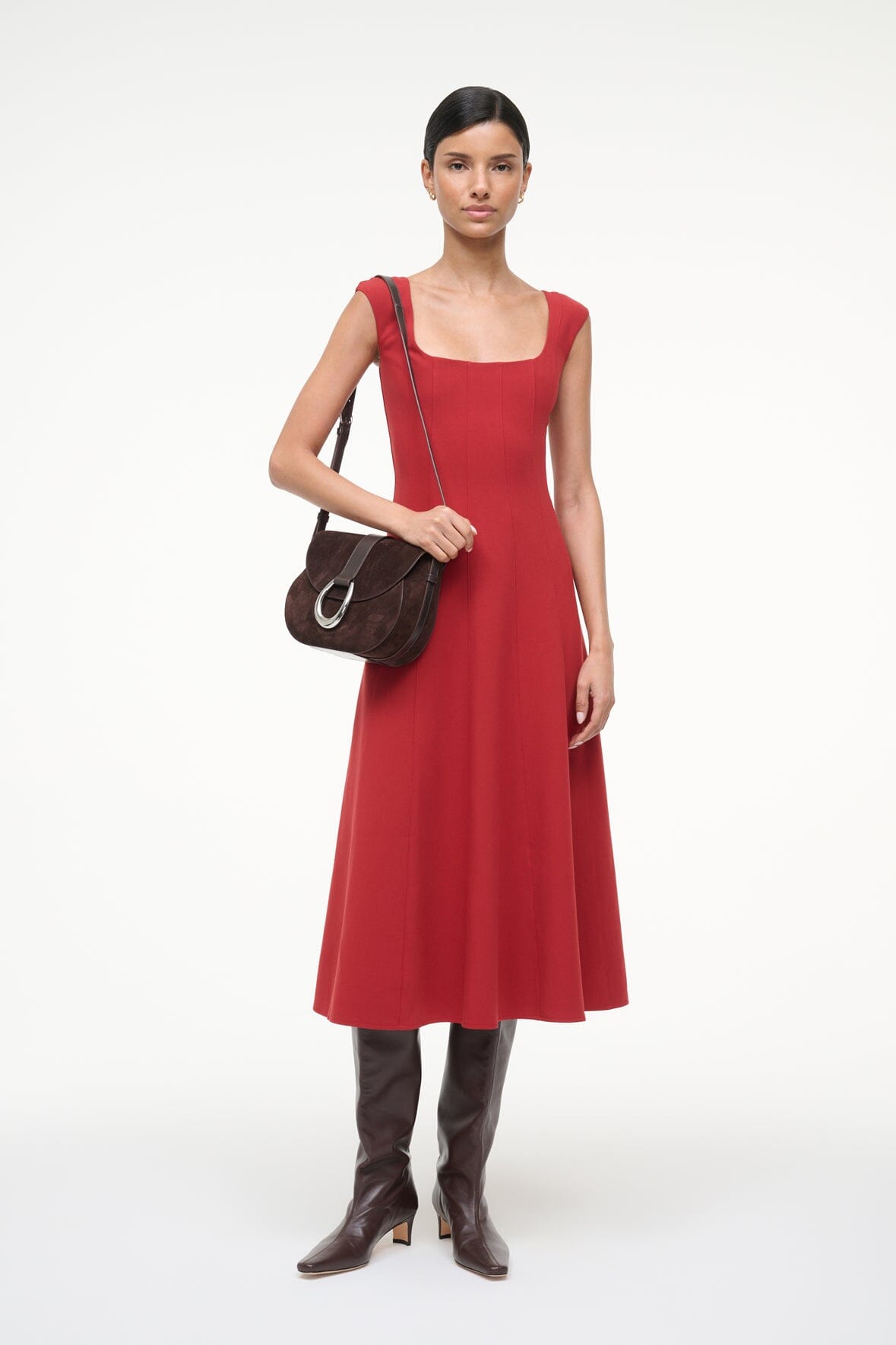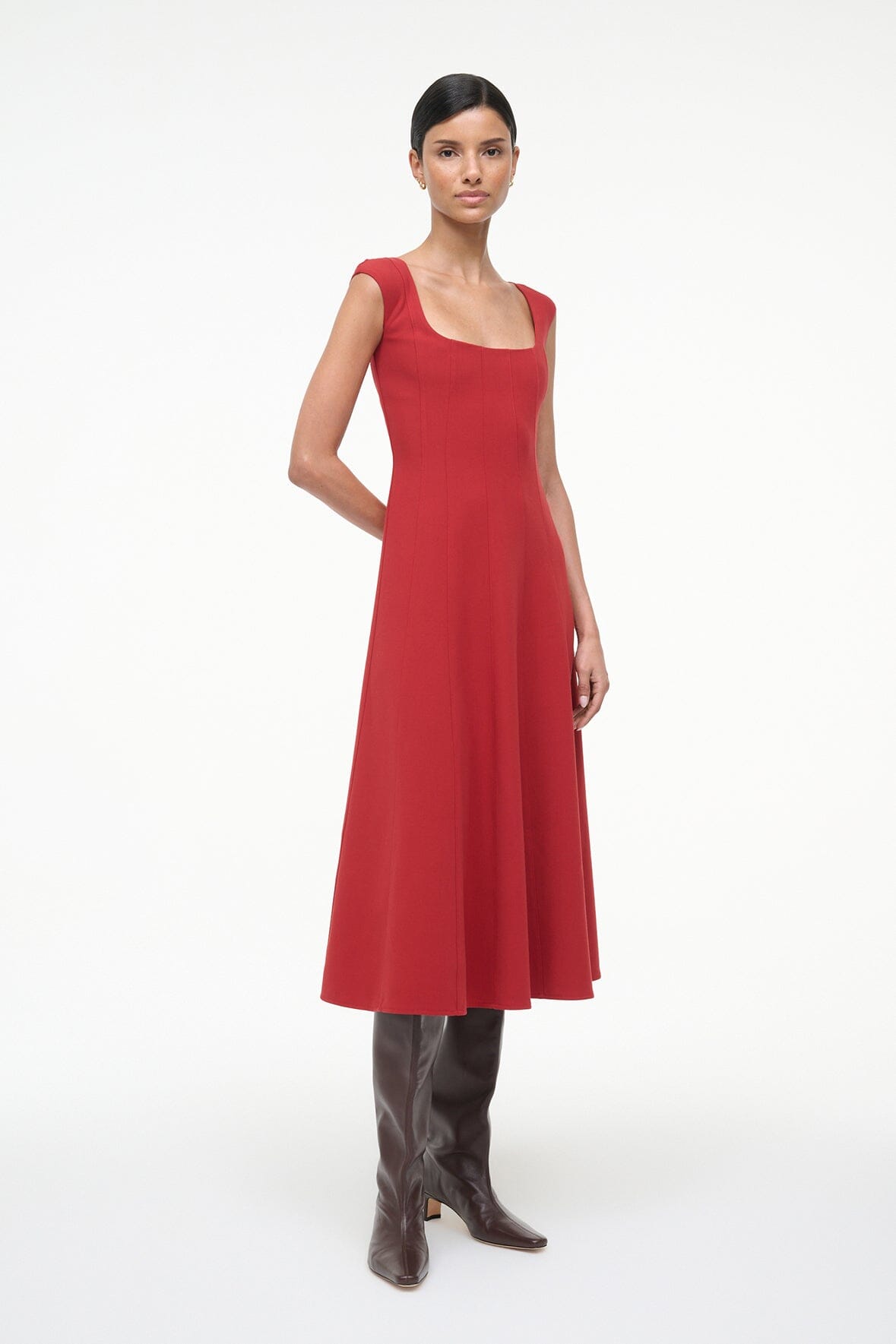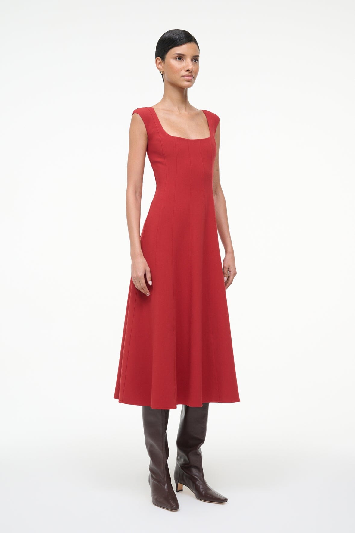 A new flattering dress silhouette. inspired by the seaming on the Wells Dress. the Charlotte is a scoop neck midi dress with corset seams through the waist. flowing to an a-line skirt.?