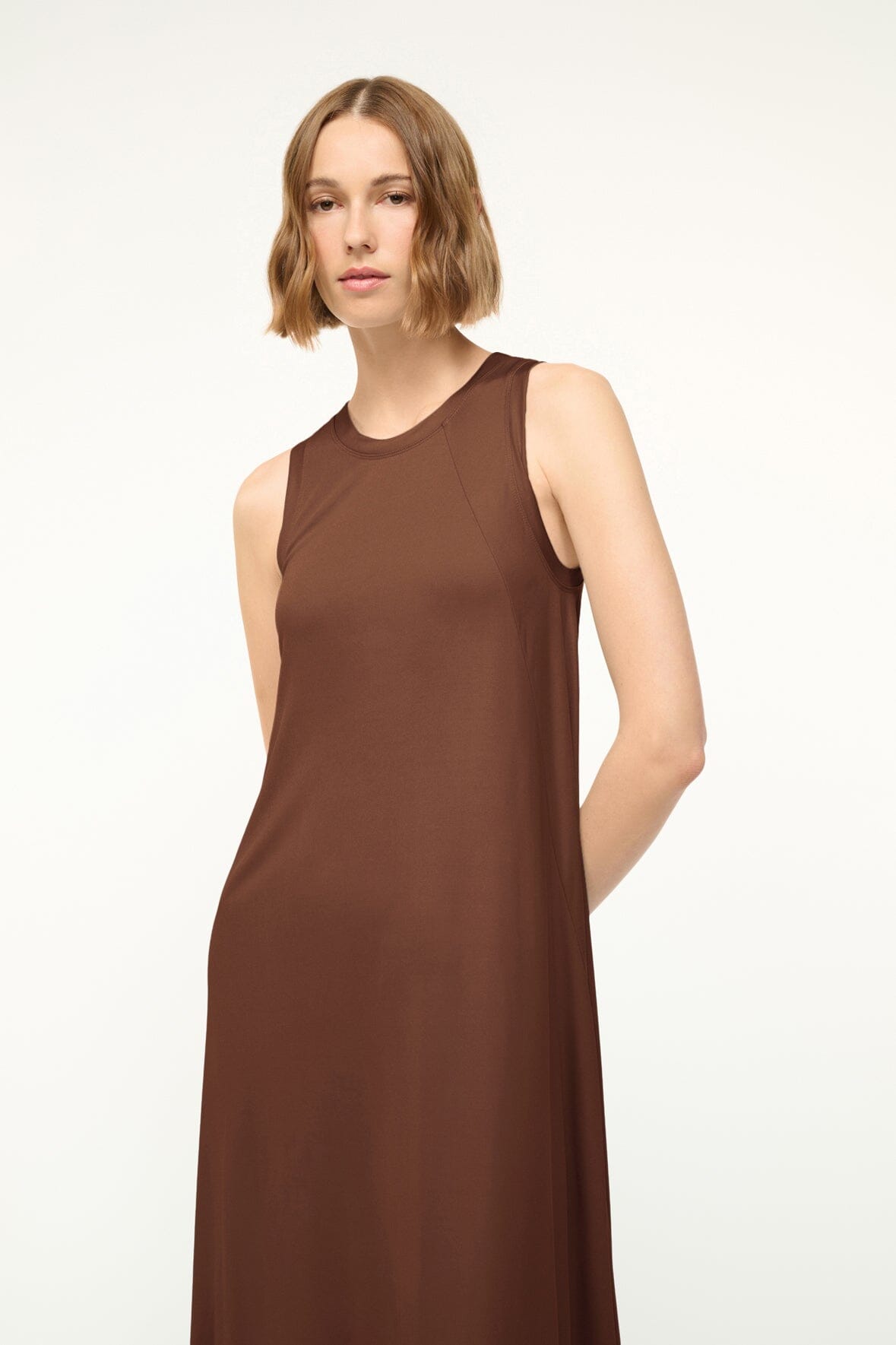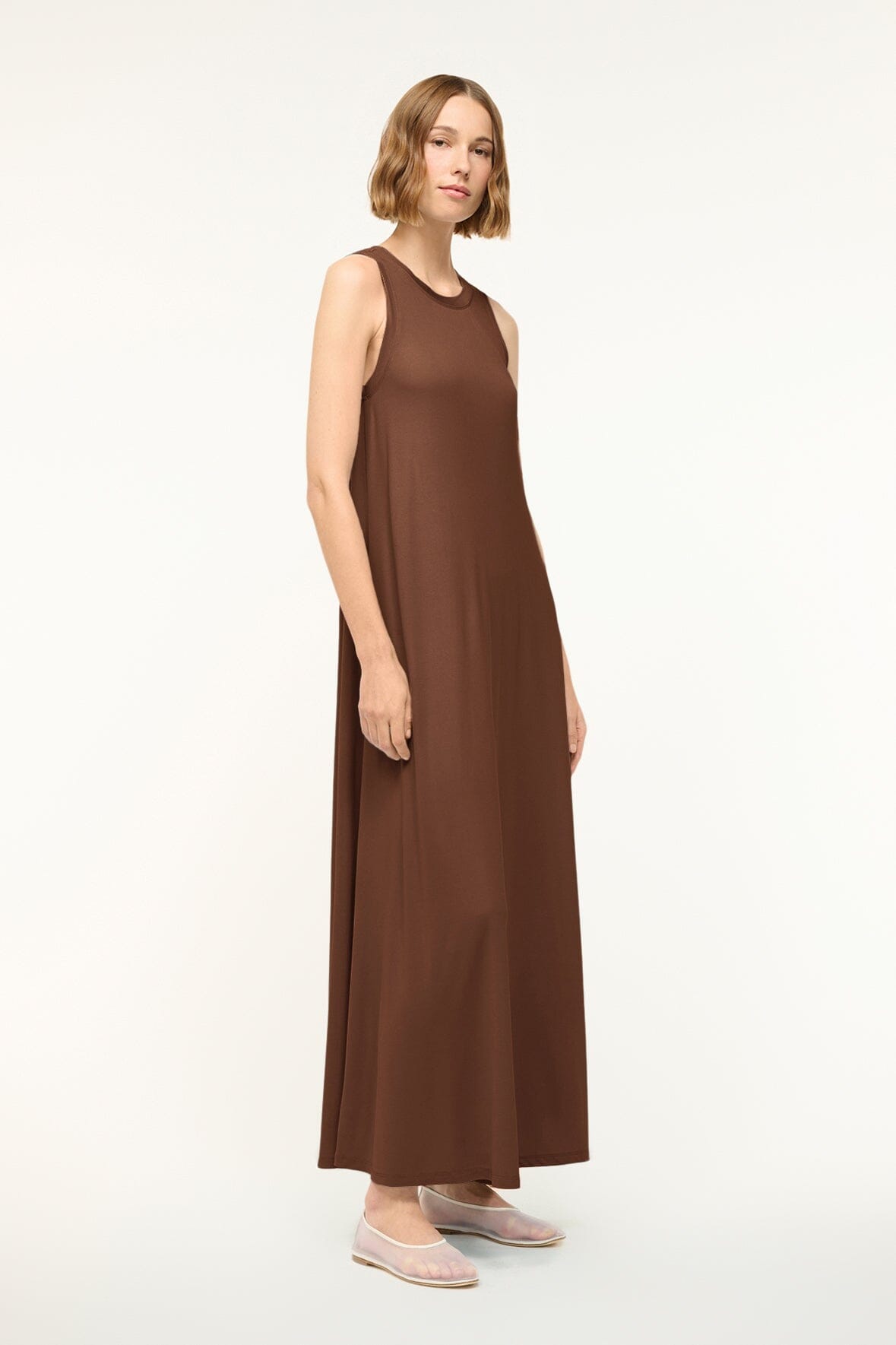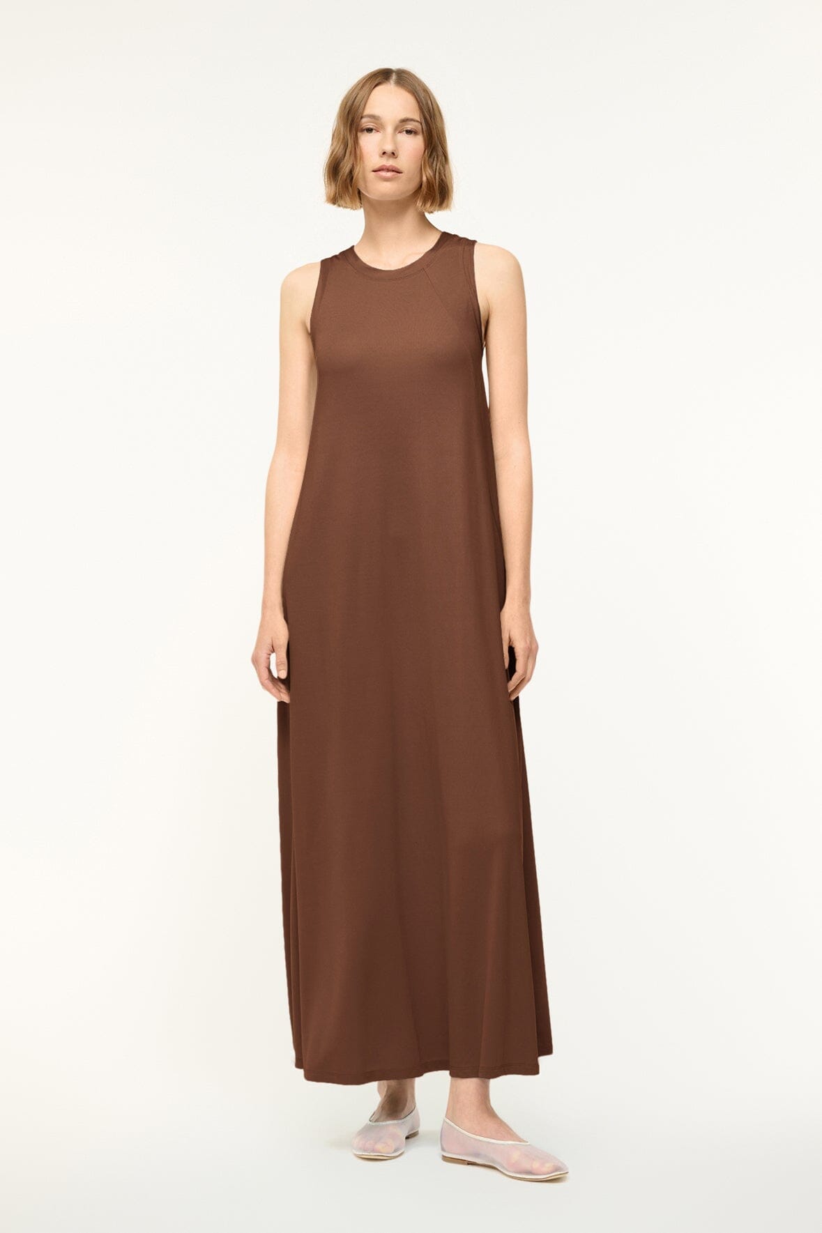 The Davi Dress is an easy a-line maxi dress in our comfortable jersey fabric. This style is sleeveless and features asymmetrical seam detailing.