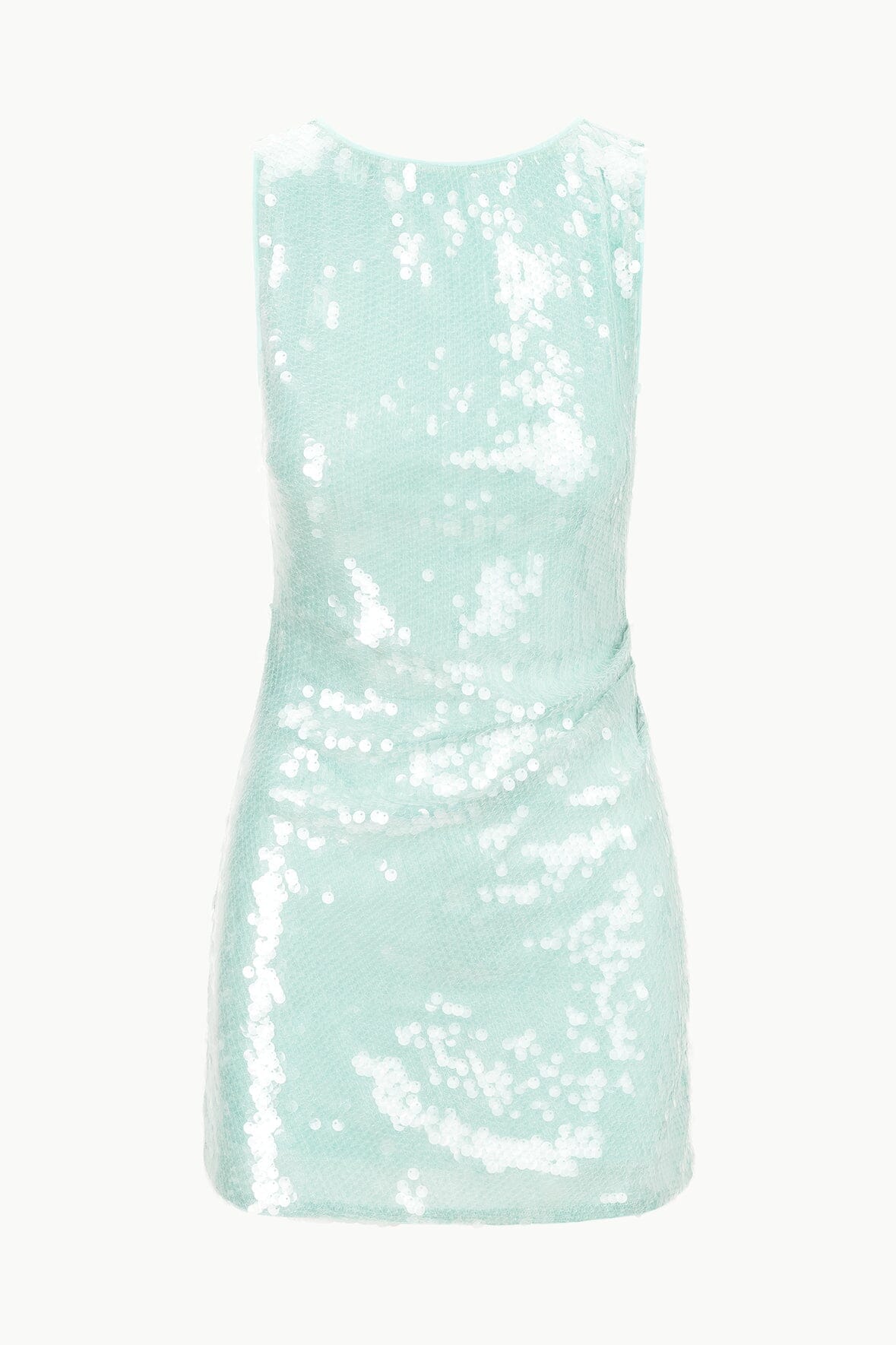 The Eton Dress is a boatneck mini dress with asymmetric draping at the waist and a hidden center back zipper.