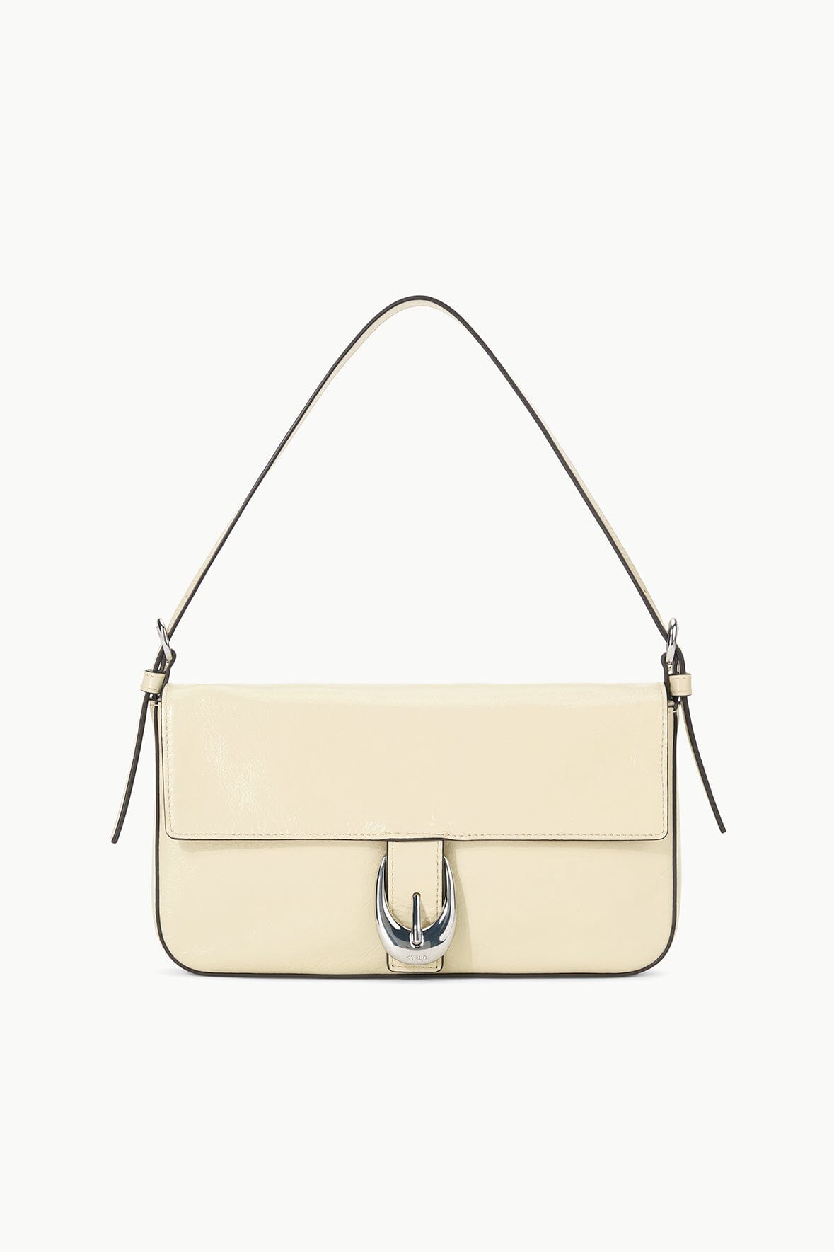 The Harlow Bag is our newest shoulder bag. featuring our signature Moon buckle hardware. This style features a center front Moon buckle. and has a snap closure and interior pocket. Made out of a slightly shiny crinkle leather.