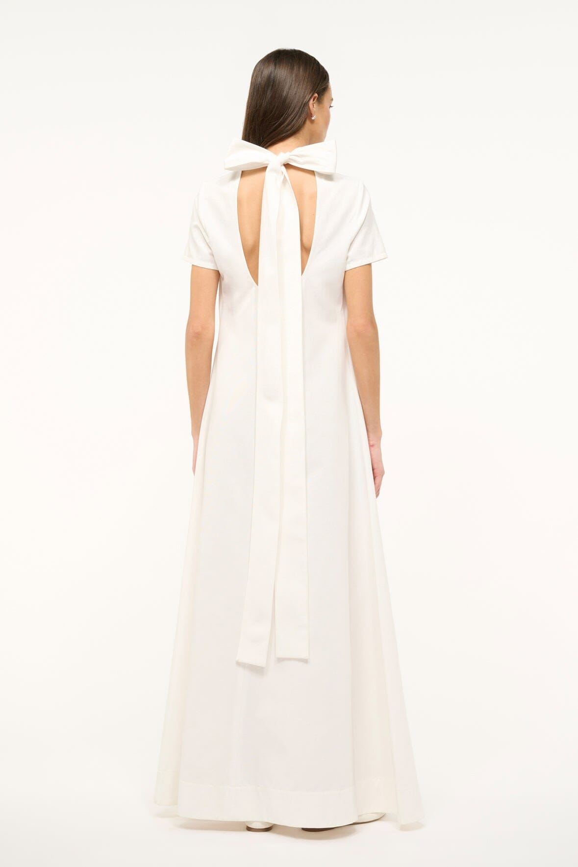 The ultimate statement dress. The Ilana is a maxi length gown with an a-line shape. open back and self-tie neck detail.