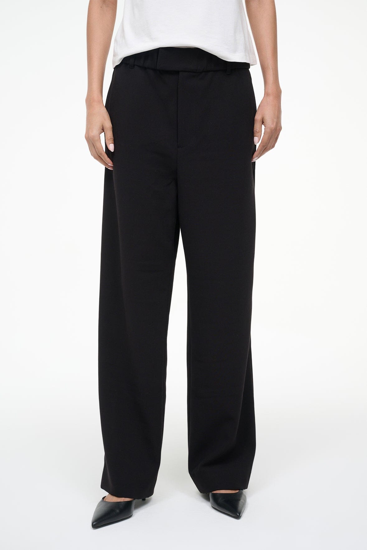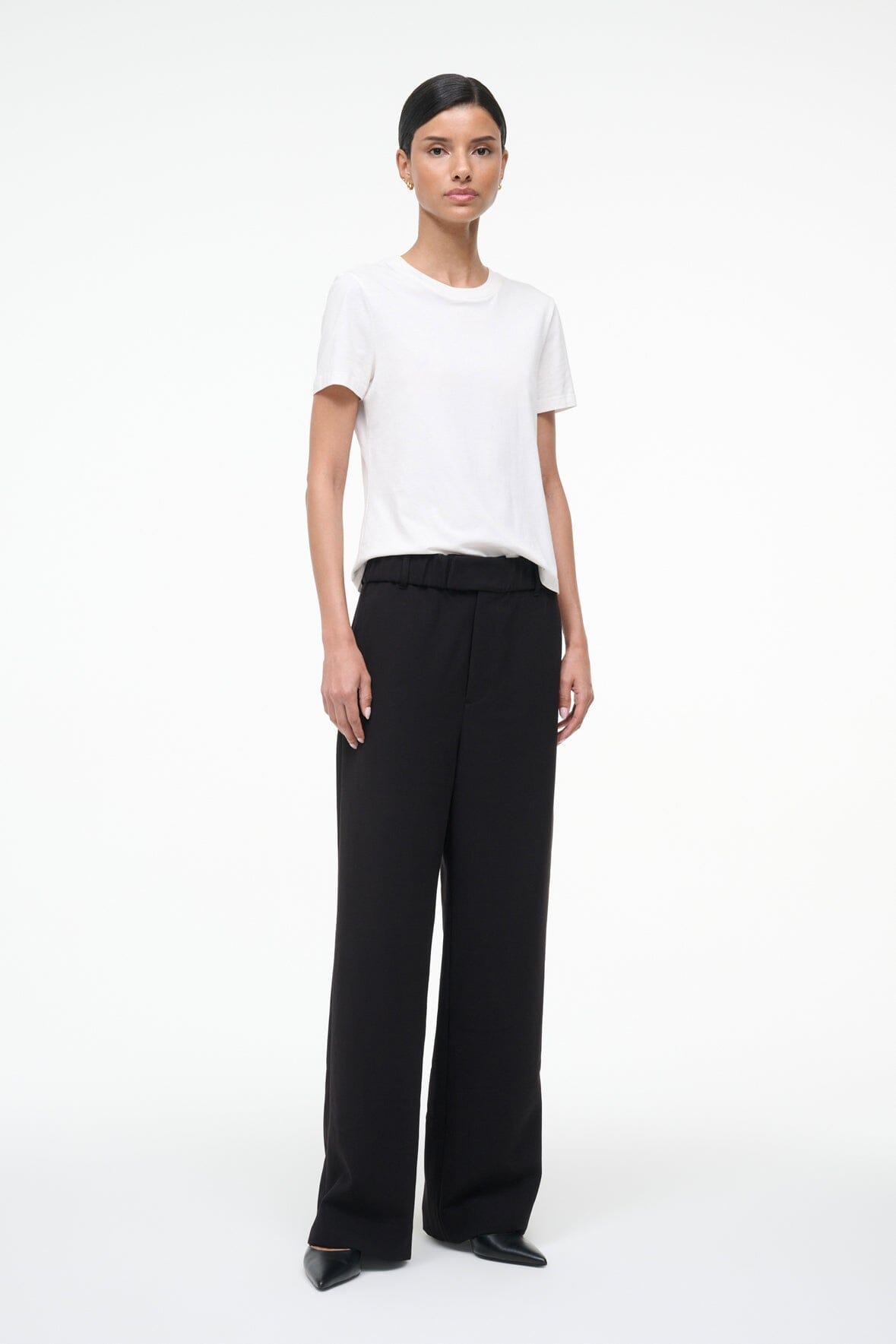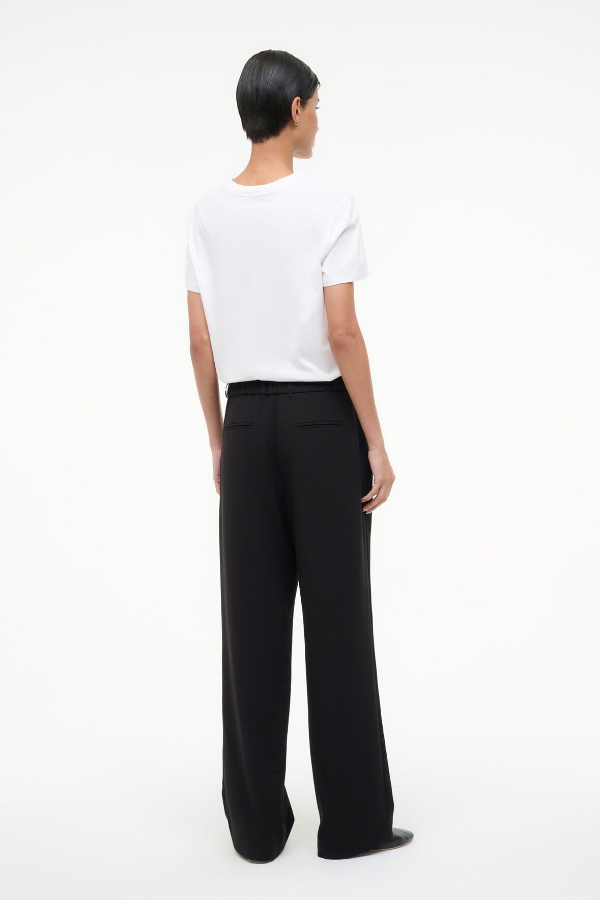 The Jerome Pant is a new favorite pant silhouette for Fall – a straight leg pant with Straight leg trouser with a wide elastic waistband and a fly front detail. this pant is versatile and easy to wear.