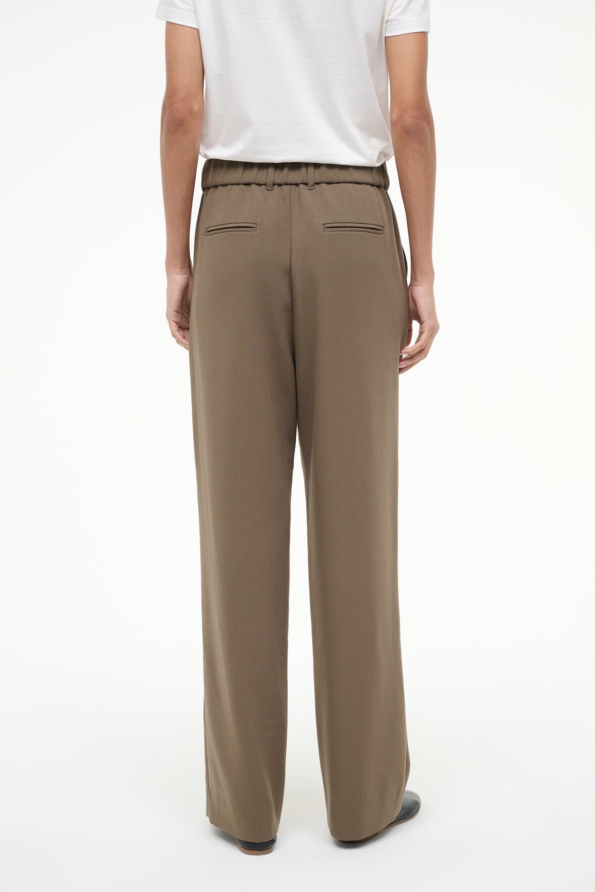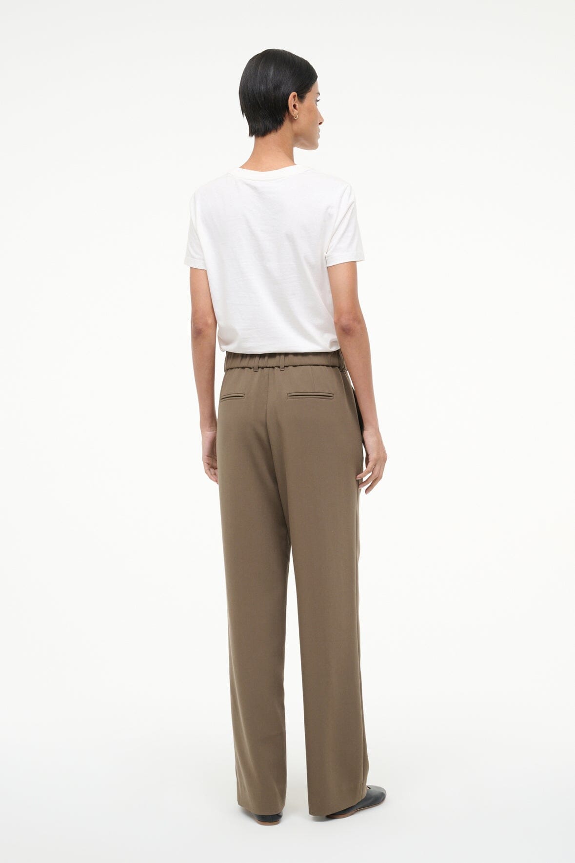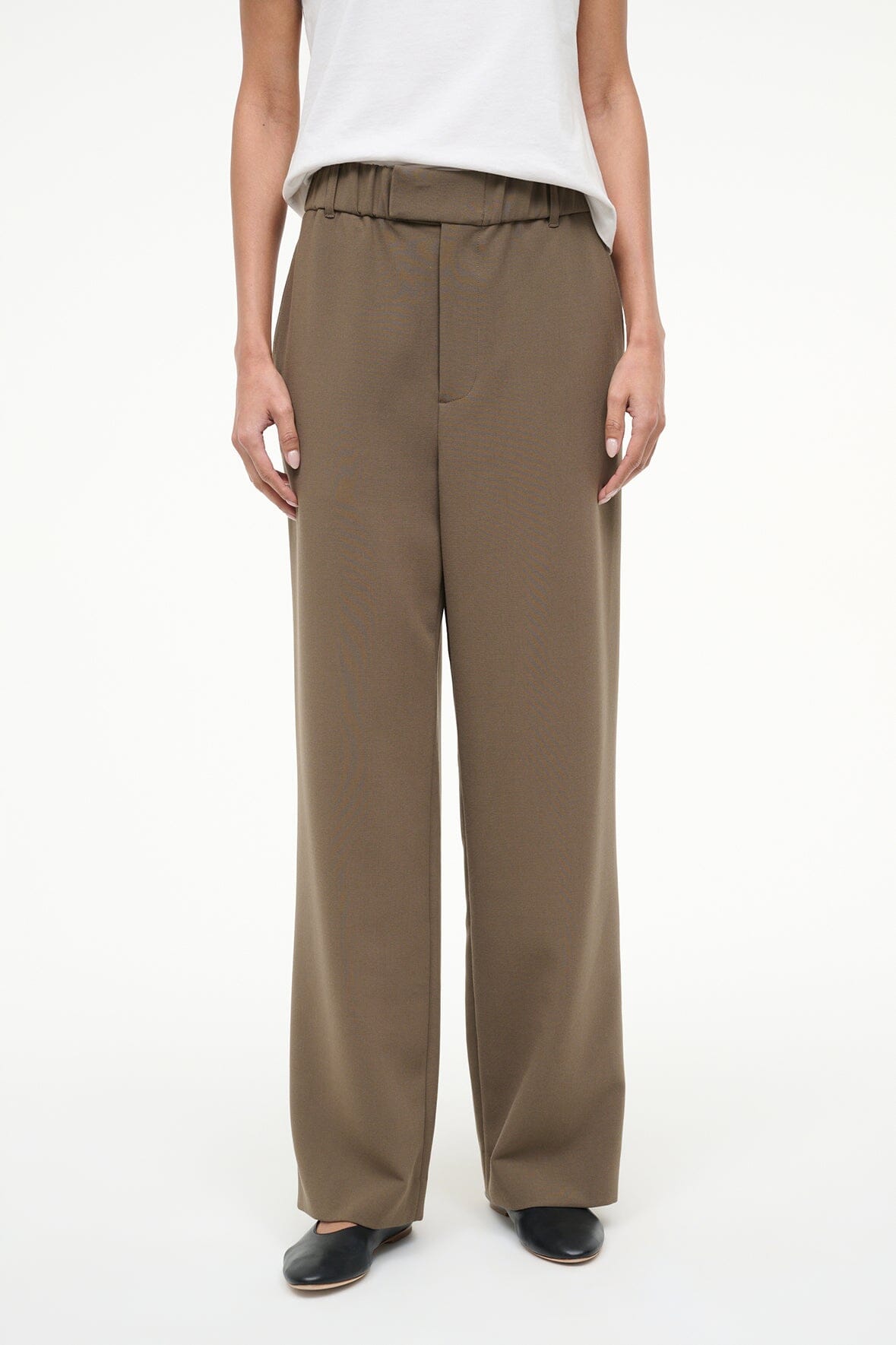 The Jerome Pant is a new favorite pant silhouette for Fall – a straight leg pant with Straight leg trouser with a wide elastic waistband and a fly front detail. this pant is versatile and easy to wear.