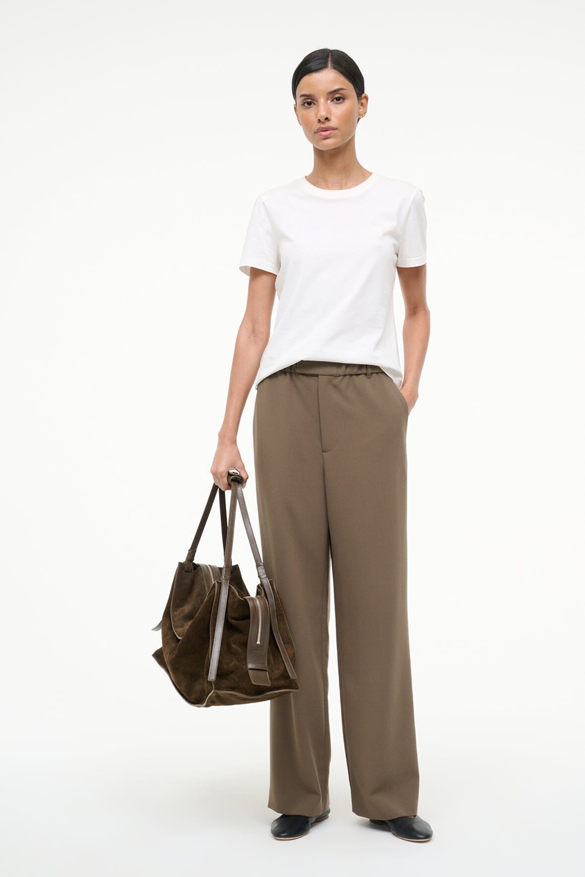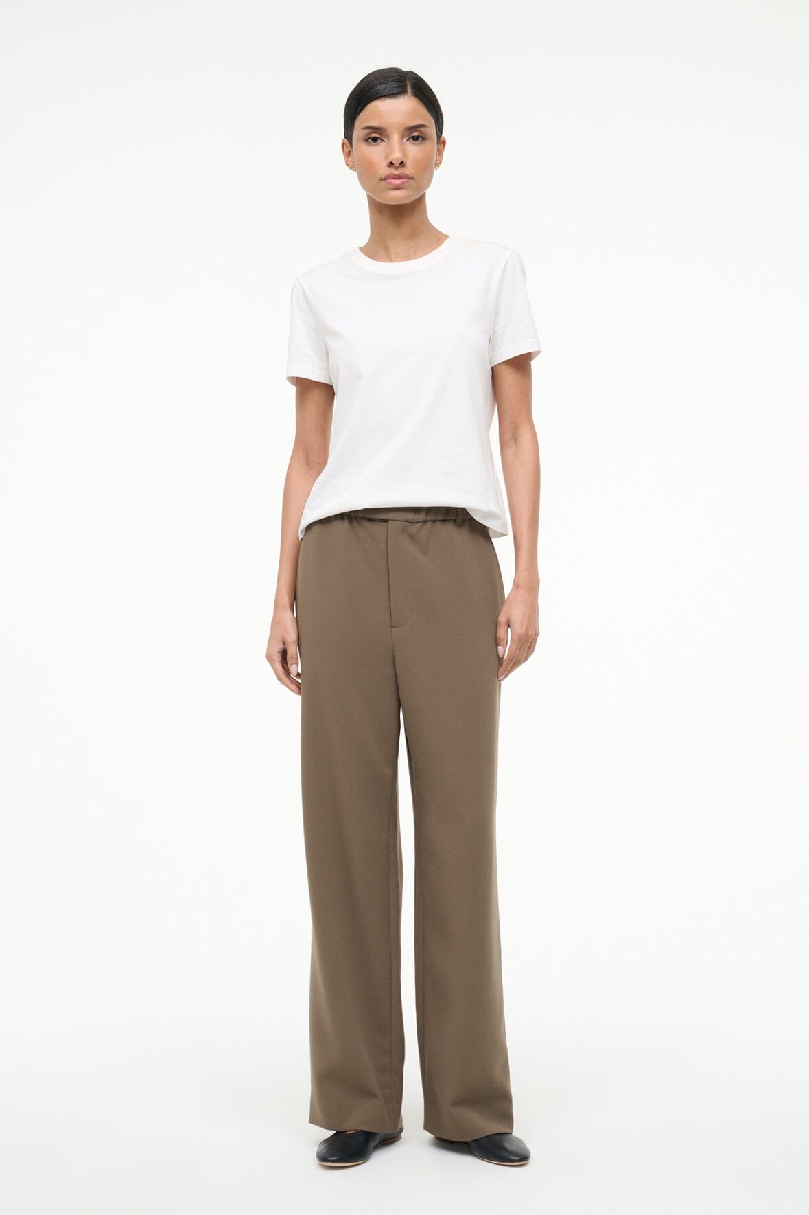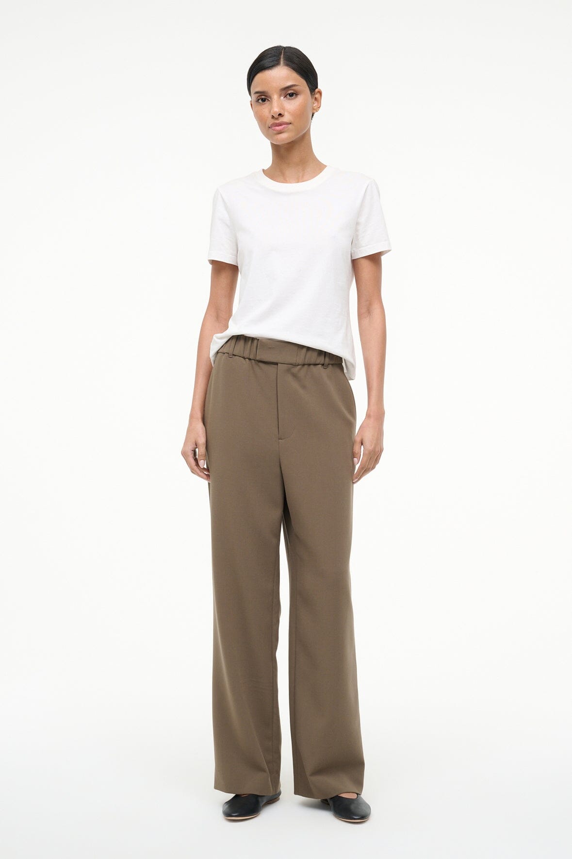 The Jerome Pant is a new favorite pant silhouette for Fall – a straight leg pant with Straight leg trouser with a wide elastic waistband and a fly front detail. this pant is versatile and easy to wear.