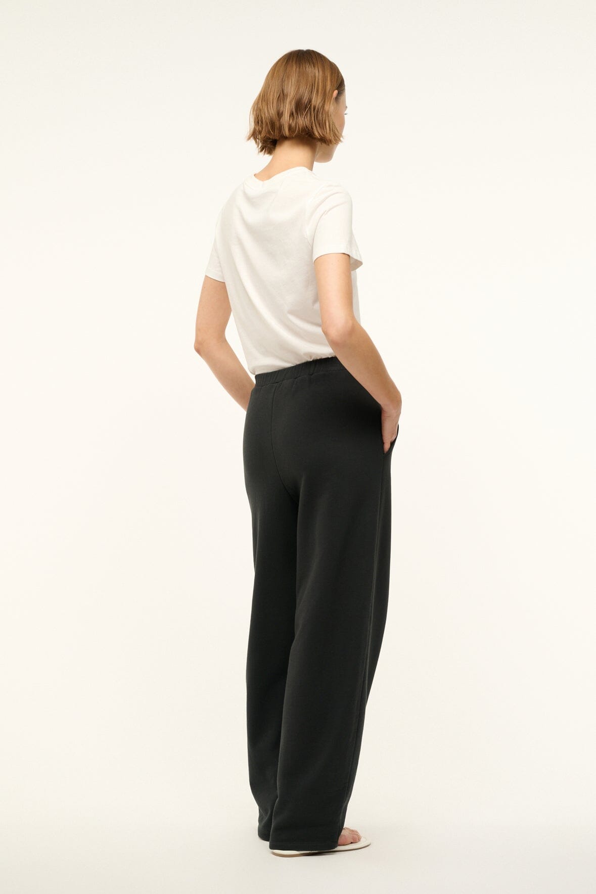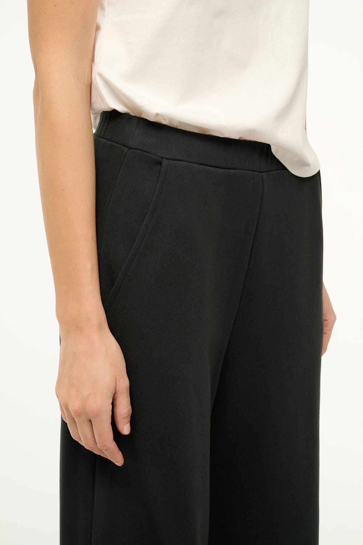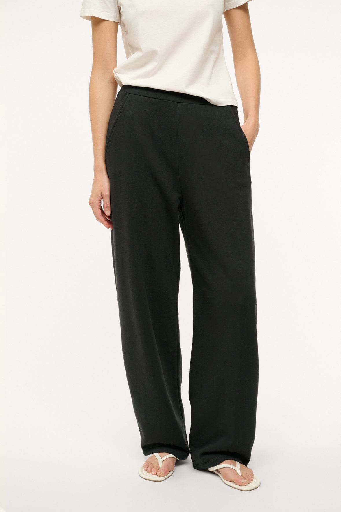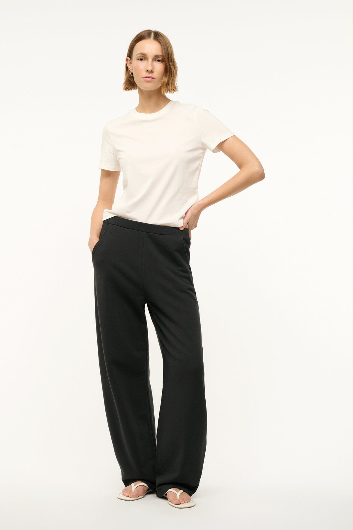 A barrel leg sweatpant with relaxed fit. the Match Pant features slash side pockets and a flat elastic waistband to easily pair with any top or sweatshirt.