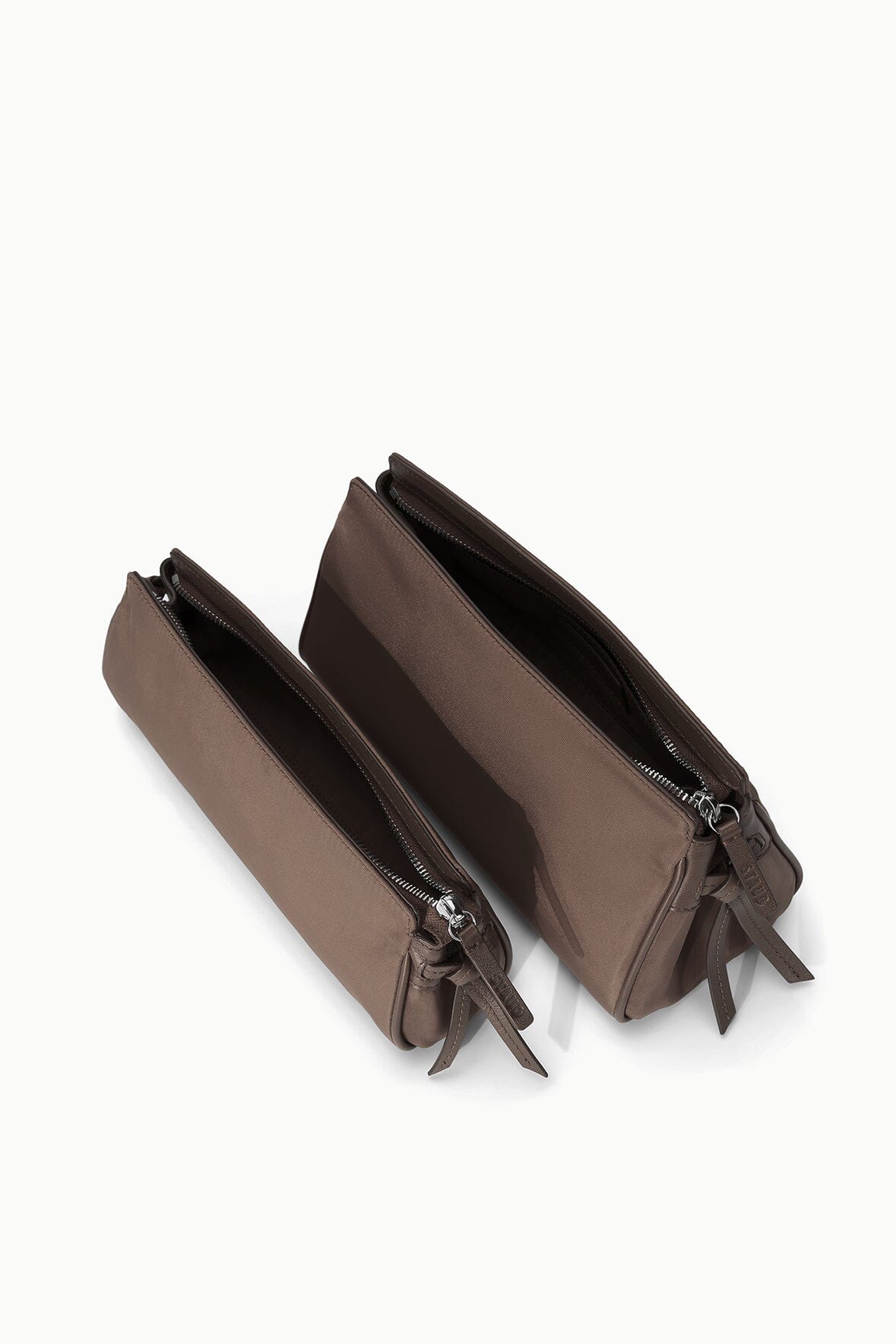 The Maude Pouches are a set of small. zip top pouches crafted from nylon with leather trim. They feature our signature Maude Family knotted details on the sides and are great for travel or organizing your essentials.