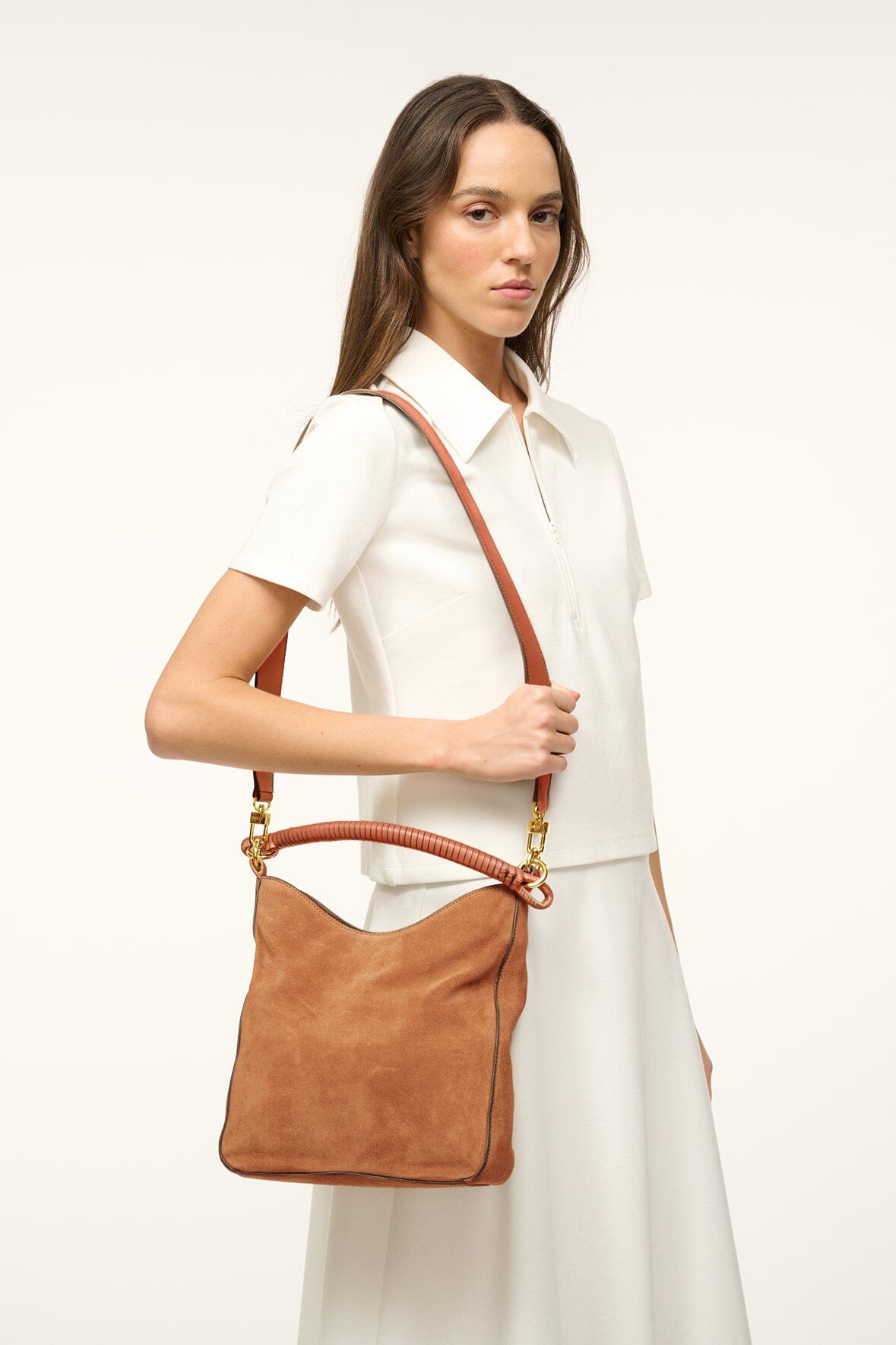 A mid-size shoulder bag. the Mel features a hand wrapped handle detail. This style featuresĀ one shorter strap and one longer strapĀ that can be worn to create two different looks.