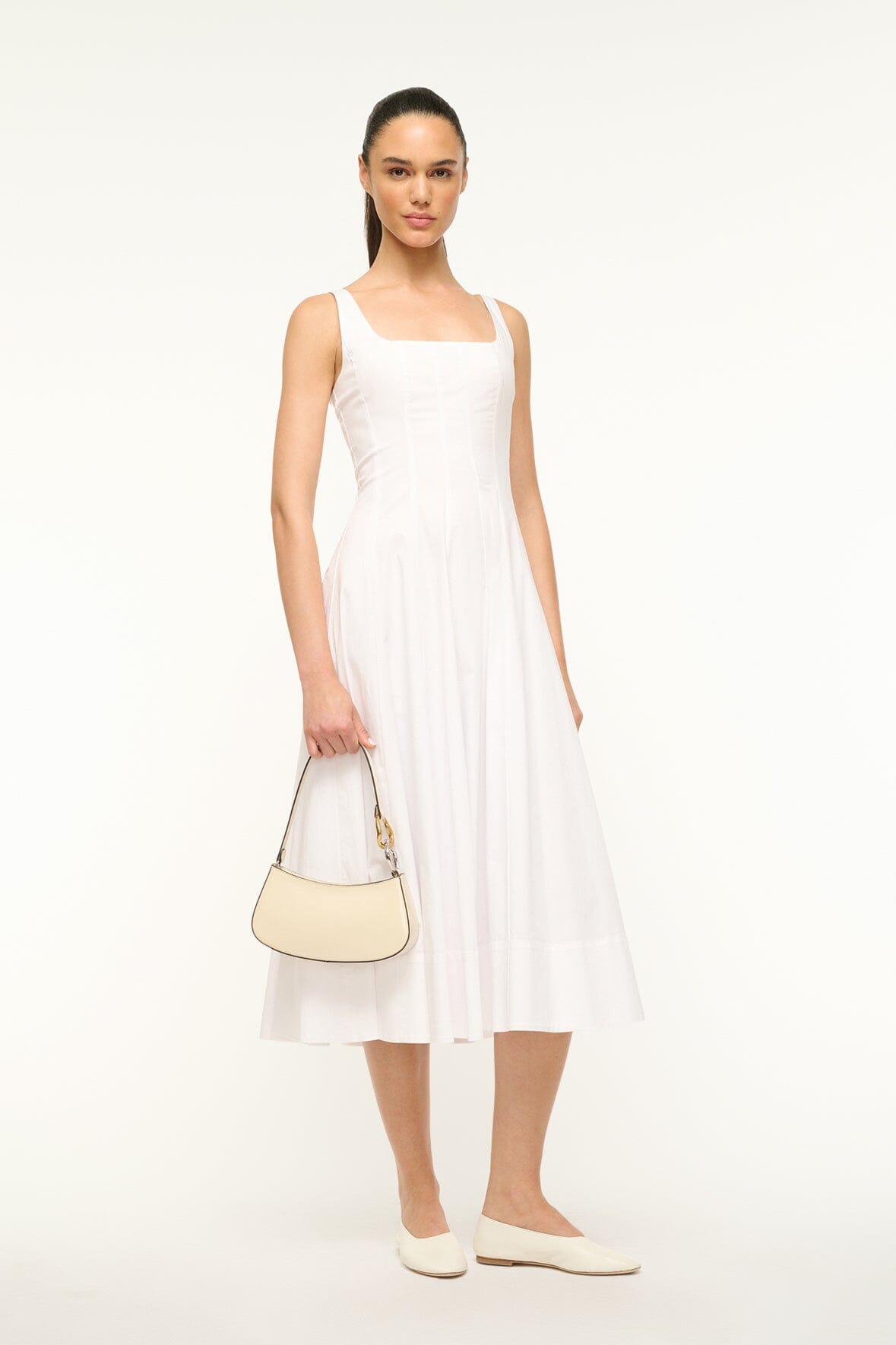 The Ollie Bag is a mini shoulder bag made out of polished leather. This style features a hardware design on the strap and a zip closure.