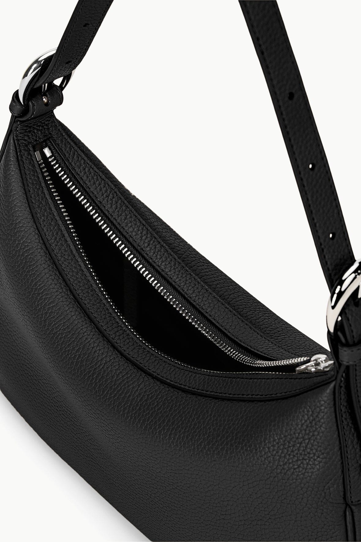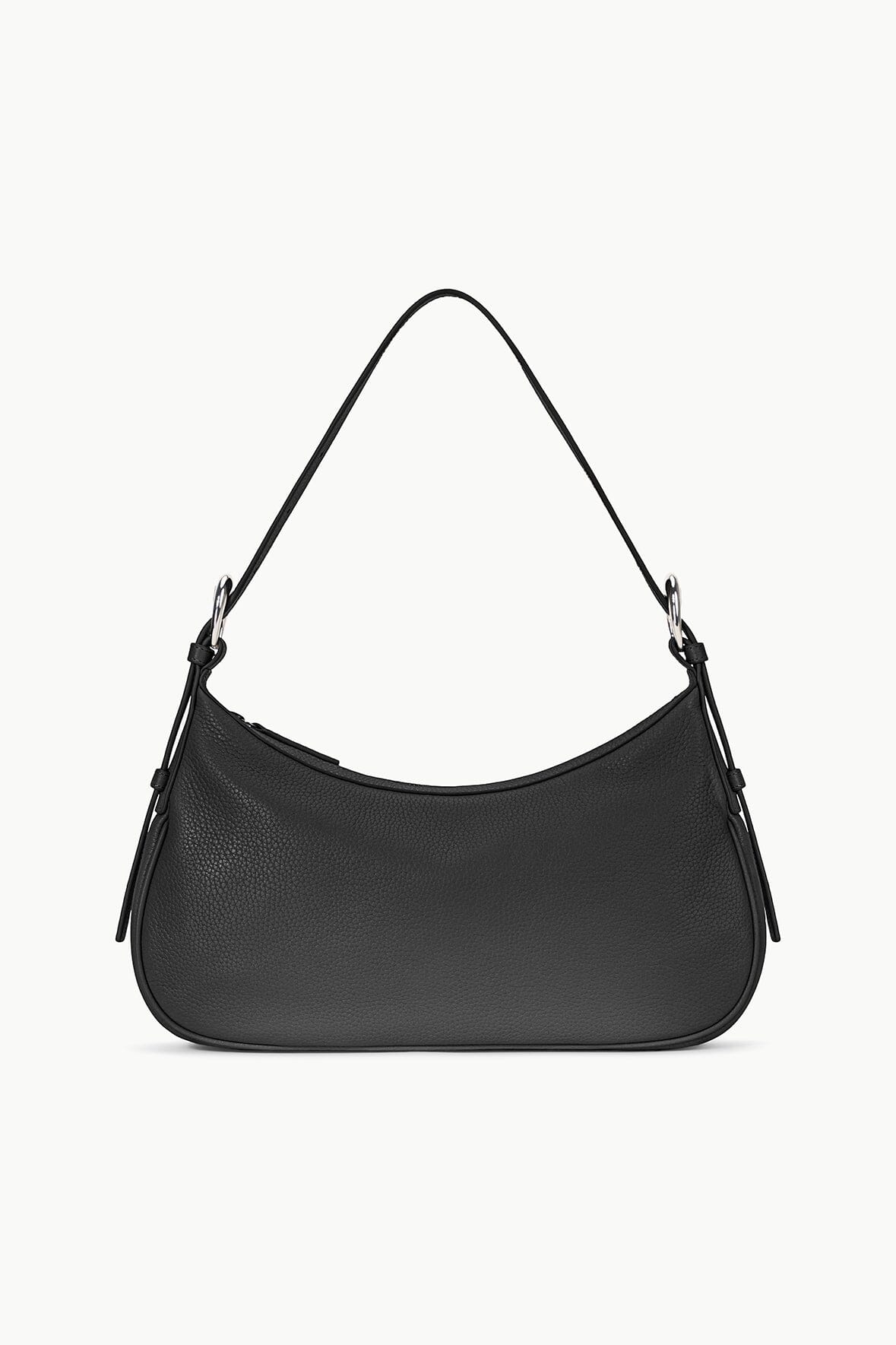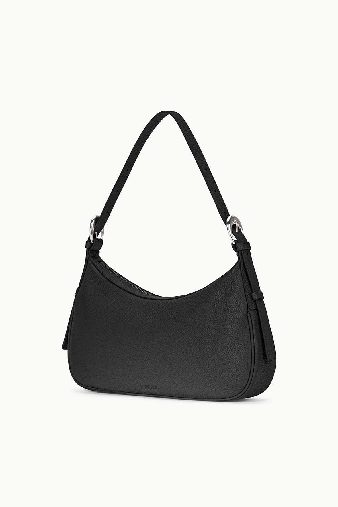 The Pine Shoulder is a pebbled leather bag with two moon shaped buckles and an adjustable shoulder strap. It features a zipper closure and an interior zipper pocket to safely store your daily essentials.