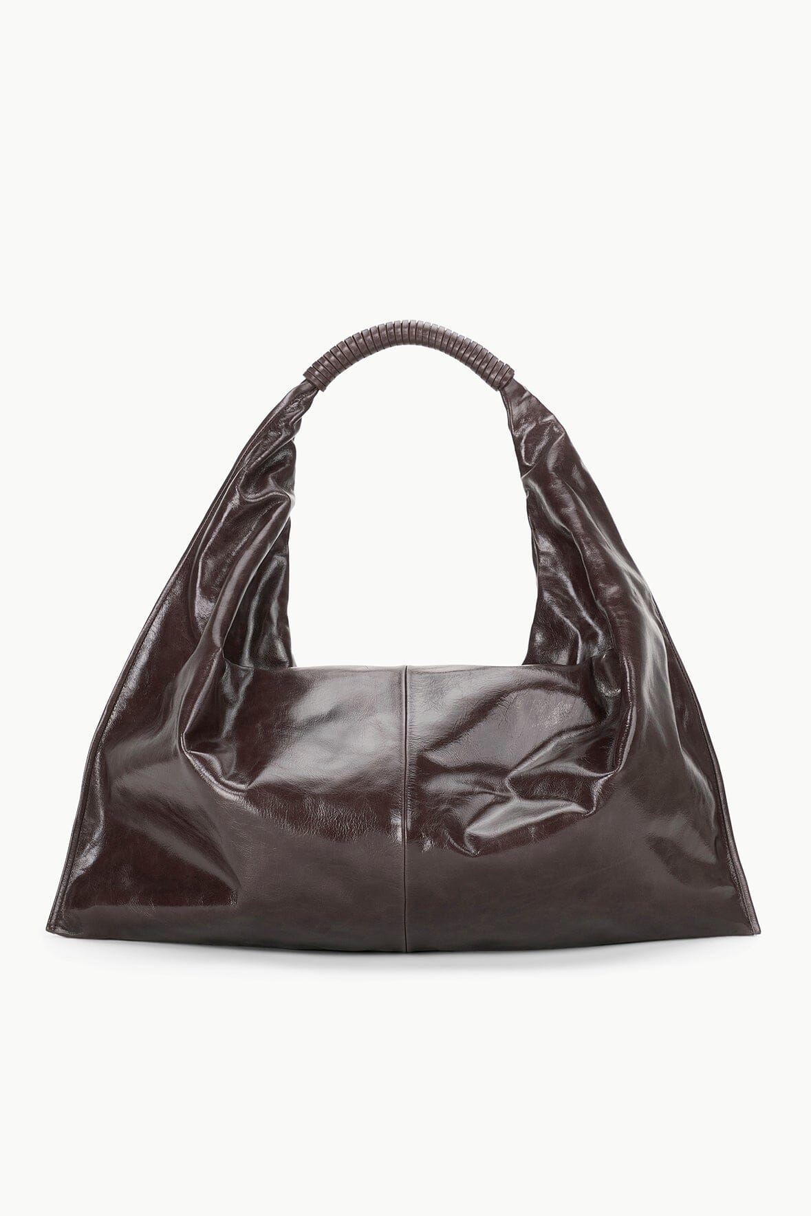 The Ronnie is a soft. slouchy shoulder bag crafted in espresso crinkle leather. This style features a leather wrapped handle. top zip. and an interior zip pocket.?
