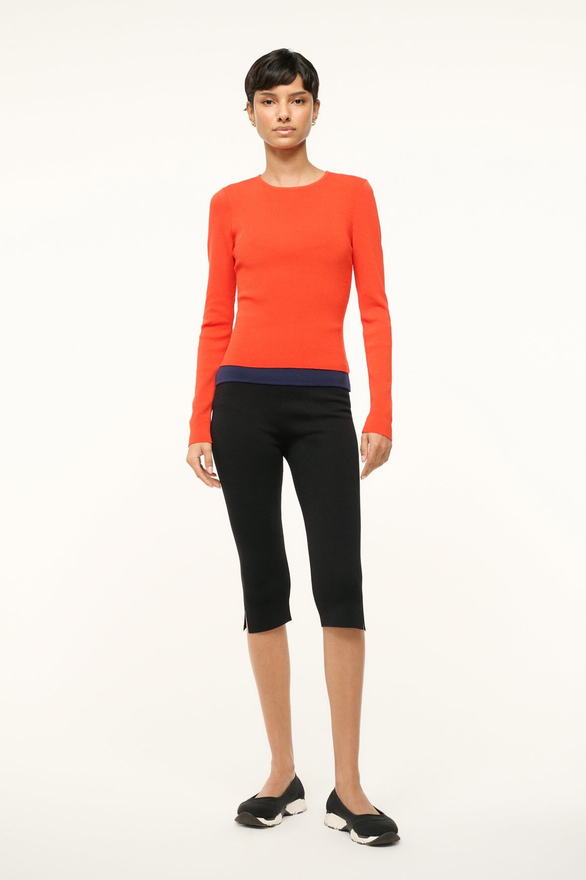The Salinas Top is a long sleeve top in our comfortable compact knit fabric. This style has a layered look at the hem and sleeves.