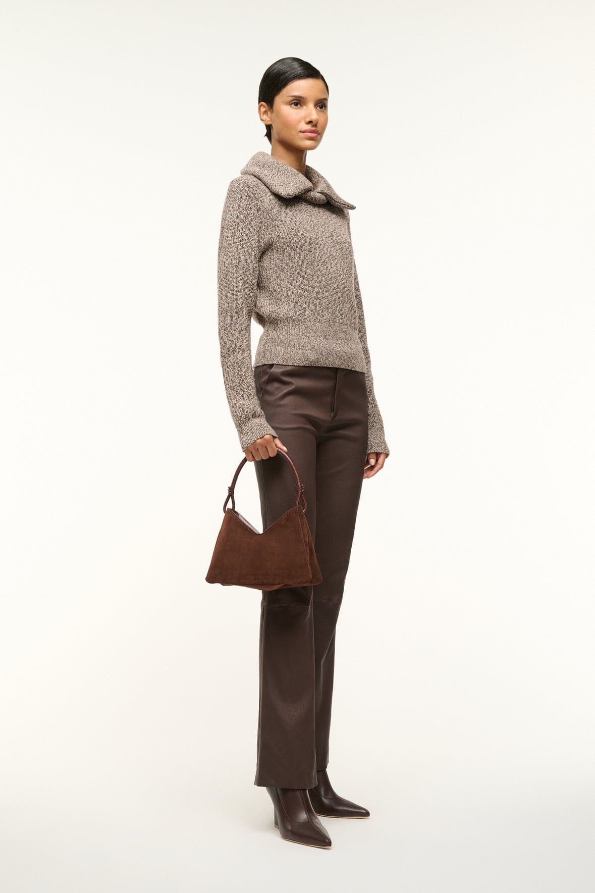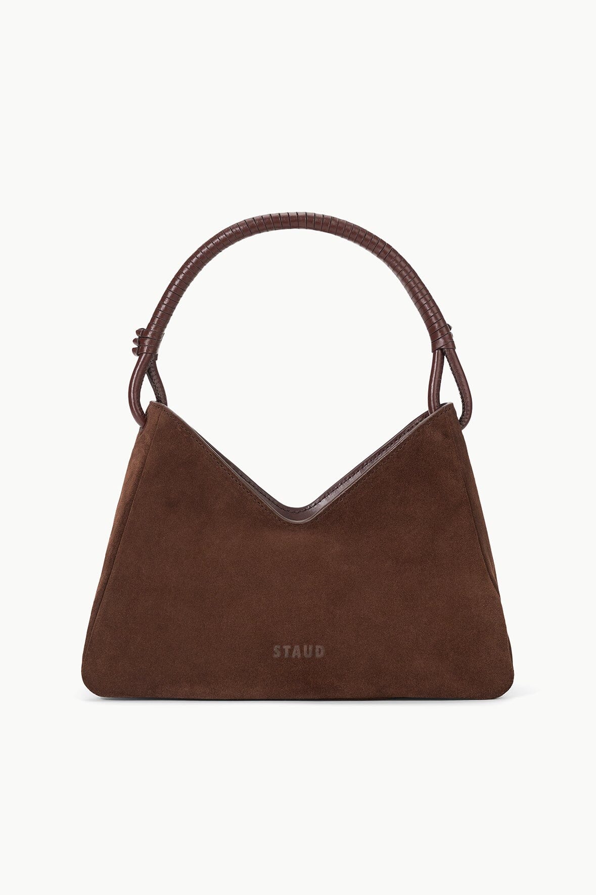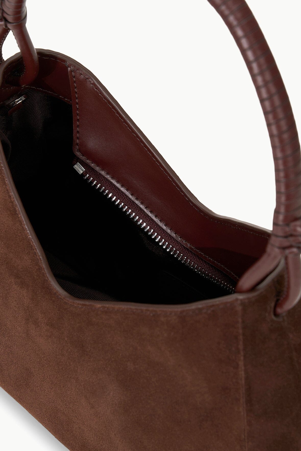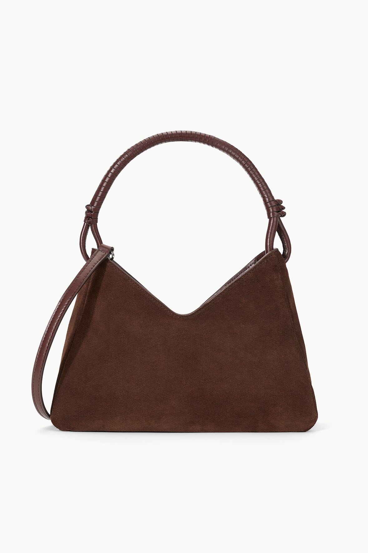 A minimal shoulder bag with removable crossbody strap. the Valerie features our signature hand-wrapped and knotted handle detailing. This style is lined with a moire fabric and features a zip closure.