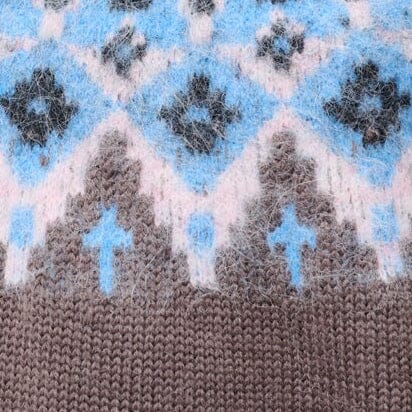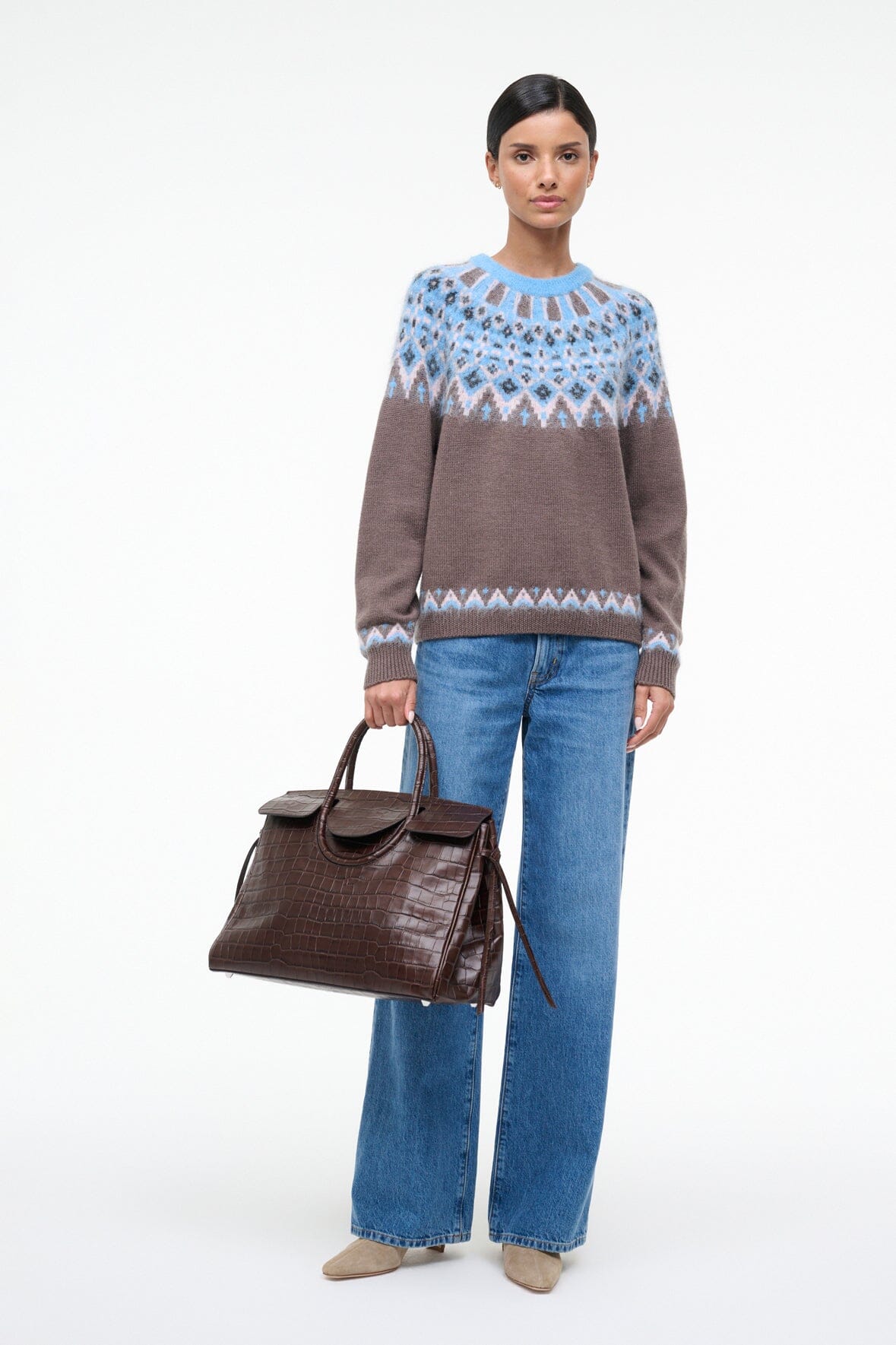 A cozy crewneck pullover. the Zane Sweater features a contrasting fairisle jacquard pattern and is made from a woll blend material.
